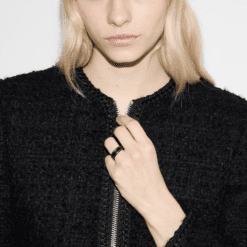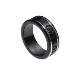 El emblemático patrón GG está grabado en un anillo de corindo sintético negro, enriquecido con detalles de oro blanco de 18 quilates para un contraste sutil.
