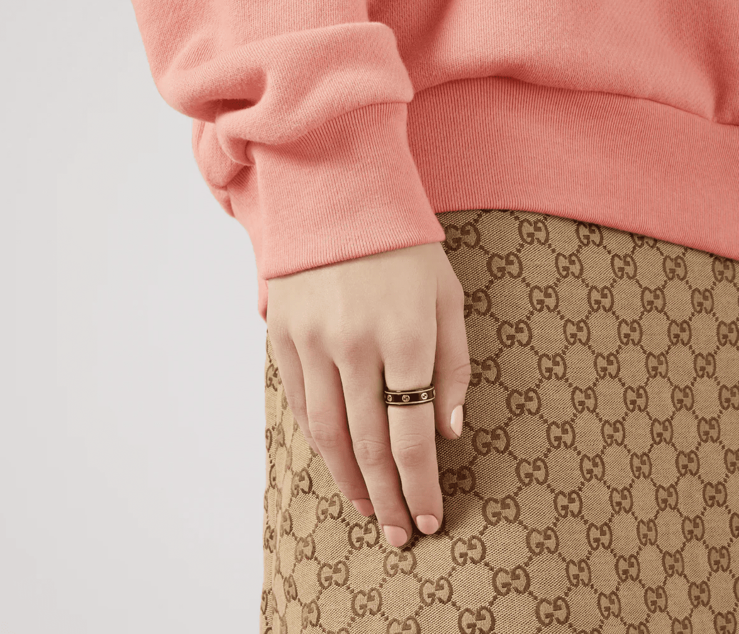 La colección Icon retoma uno de los motivos más emblemáticos de la Firma para la colección Cruise 2020. El diseño GG, presentado en oro amarillo, destaca sobre la banda de corindón sintético negro, y el ribete trenzado completa el modelo.