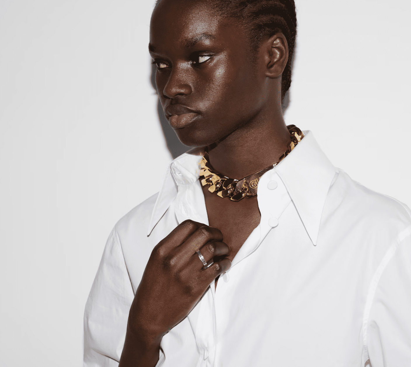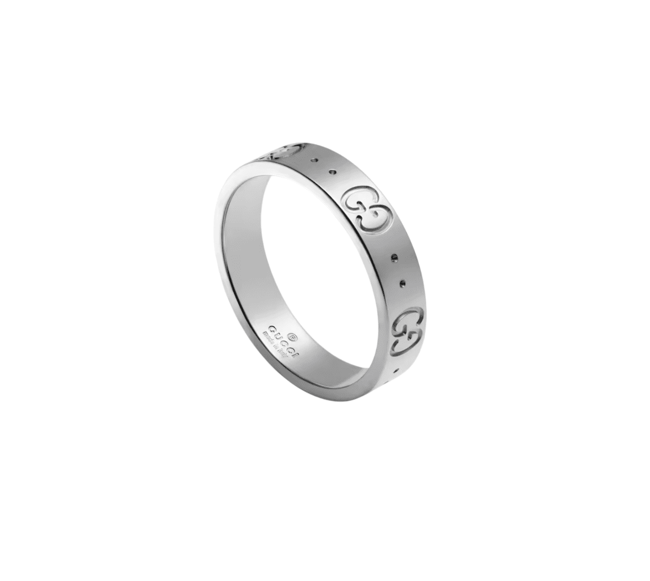 Este fino anillo Icon en oro blanco de 18 quilates está grabado con el emblemático logotipo GG. Este característico símbolo, formado por las iniciales del fundador de la Firma, Guccio Gucci, rinde homenaje al legado de la Firma.