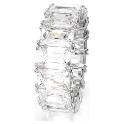 Este anillo de Swarovski se distingue por su look impresionante y elegante. Una hilera de resplandecientes piedras blancas, talladas en forma rectangular facetada, le da un aire de refinada simplicidad. La línea continuada de brillantes piedras define el carácter del diseño y combina bien con otros accesorios igual de elegantes, especialmente otros anillos, para crear un look apilado atractivo y de tendencia. Un complemento ideal para ocasiones especiales y una buena idea de regalo.