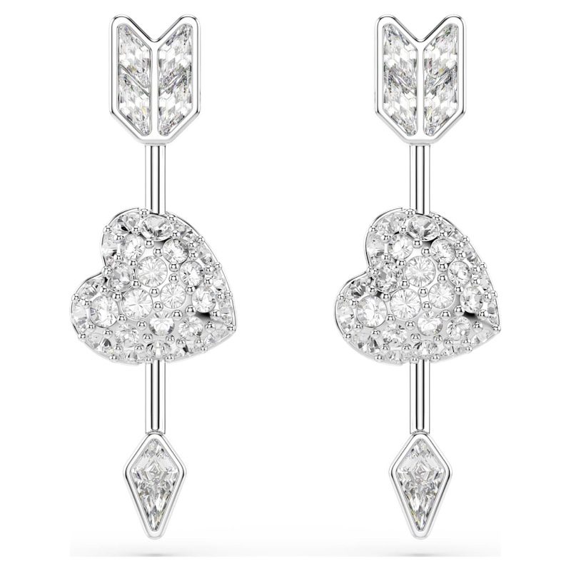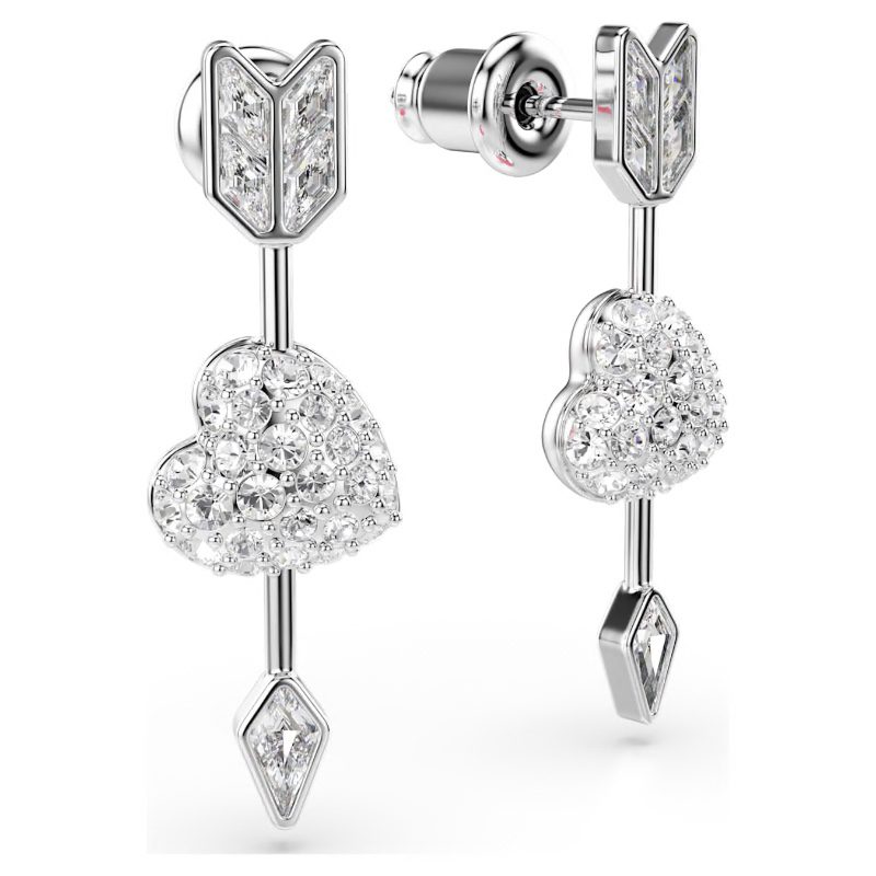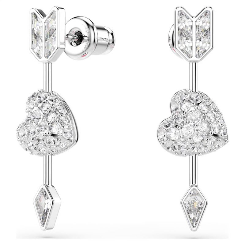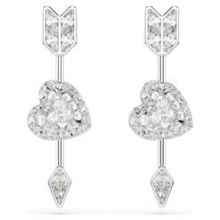Cupido ataca dos veces con estos expresivos pendientes Idyllia. Cada pieza bañada en rodio presenta un corazón de amor atravesado por una flecha, con brillantes cristales transparentes en un lado y un vivo color rosa en el otro. Dales la vuelta tan a menudo como quieras para disfrutar de versátiles opciones de estilo.