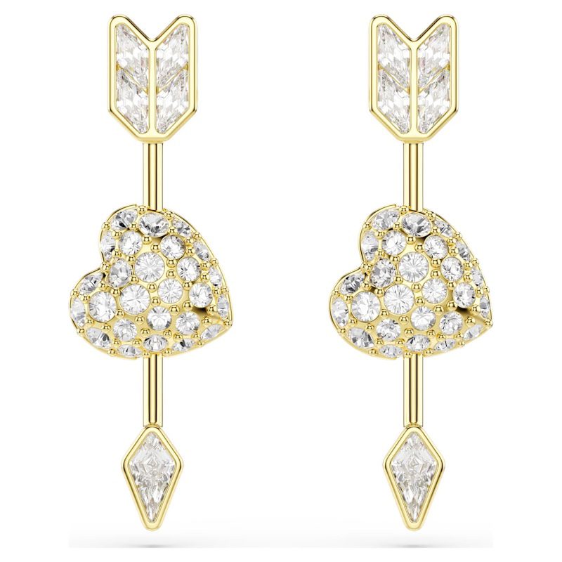 Cupido ataca dos veces con estos expresivos pendientes Idyllia. Cada pieza bañada en tono oro presenta un corazón de amor atravesado por una flecha, con brillantes cristales transparentes en un lado y un vivo color rosa en el otro. Dales la vuelta tan a menudo como quieras para disfrutar de versátiles opciones de estilo.