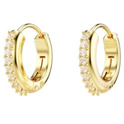 Enciende tu estilo con estos brillantes pendientes de aro mini. Estos pendientes bañados en tono oro están adornados con Swarovski Zirconias transparentes con engaste de garra en la parte exterior. Una forma sencilla de infundir a tu look un toque de brillo instantáneo.