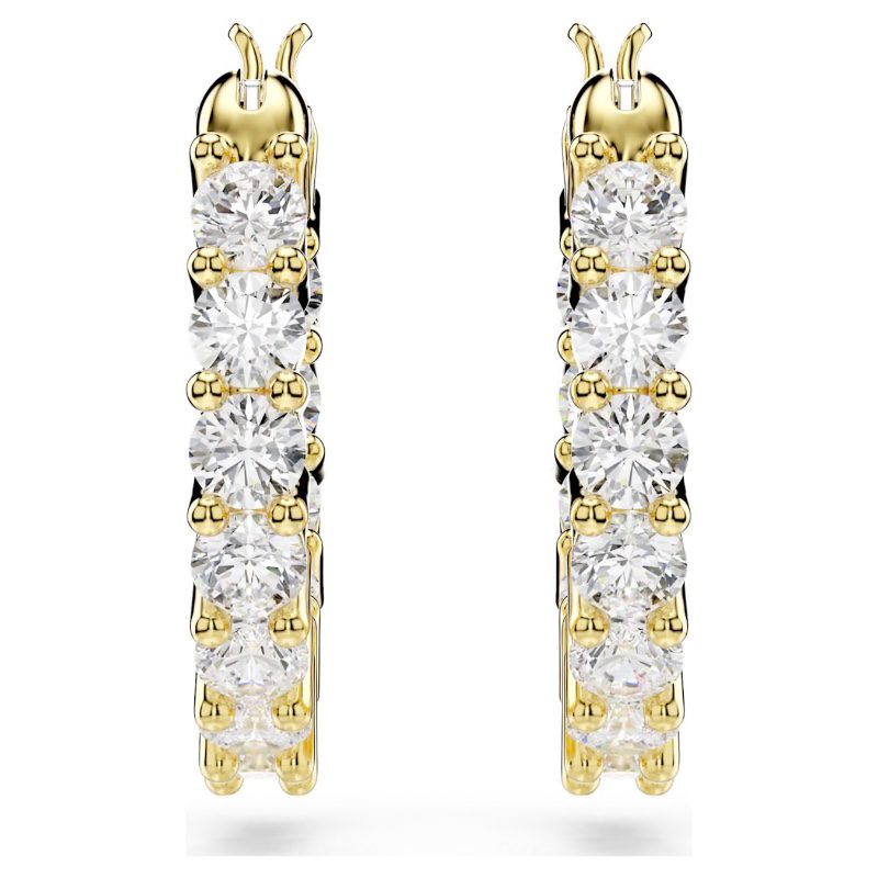 Estos aros mini de Swarovski son un accesorio radiante y atemporal. Ambos pendientes están bañados en tono oro y decorados con numerosas Swarovski Zirconia que realzan su atractivo aspecto con un sutil brillo. Ideales para lucir con collares y pulseras a juego, estos pendientes son un regalo encantador para el uso diario.