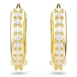 Enciende tu estilo con estos brillantes pendientes de aro mini. Estos pendientes bañados en tono oro están adornados con Swarovski Zirconias transparentes con engaste de garra en la parte exterior. Una forma sencilla de infundir a tu look un toque de brillo instantáneo.