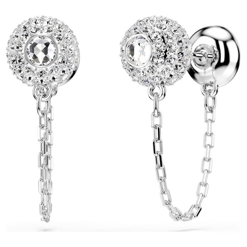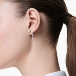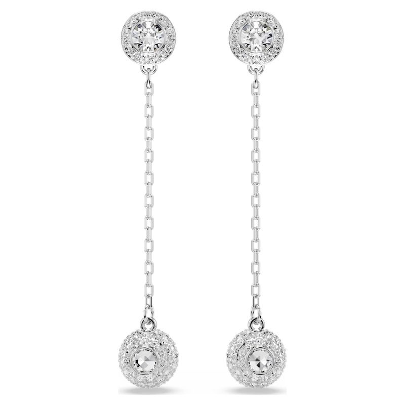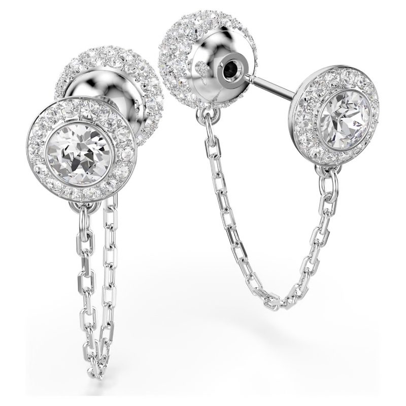 Luce un estilo maravilloso con estos brillantes pendientes de Swarovski. Cada pieza bañada en rodio presenta una larga cadena conectada a un motivo de doble cara, que ofrece una presentación diferente de cristales de talla redonda en cada lado. El motivo colgante también se puede conectar a la parte posterior del pendiente de botón para una opción de uso versátil. Mézclalos y combínalos con otras piezas de Una Angelic para crear un look de brillo máximo.