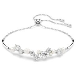 Abraza la magia infinita de las estrellas con este deslumbrante brazalete Constella. Este original diseño presenta una delicada cadena y una agrupación de Swarovski Zirconia y Swarovski Crystal Pearls de diferentes tamaños que parecen flotar entre las barras metálicas de la pieza. Un cierre con mecanismo de tracción también mejora el ajuste para se adapte a la perfección a cualquier muñeca. Combínalo con otras piezas de la colección Constella para una brillante oda al cielo nocturno.