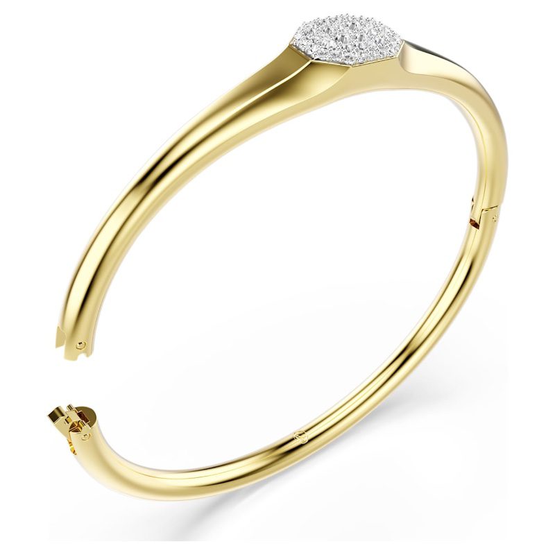 Este fino brazalete Dextera rebosa elegancia y energía. La silueta bañada en tono oro presenta cristales redondos de distintos tamaños, engastados expertamente en una formación octogonal mediante la técnica de baño de rodio de Swarovski. Completado con un cierre Wonderclick, es un accesorio imprescindible que puede hacer una transición natural del día a la noche. Llévalo junto con el anillo midi a juego para obtener el máximo brillo.