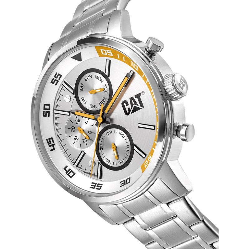 El reloj Cat Sail presenta un sofisticado diseño de varias esferas, que le permite controlar el día, la fecha y el reloj de 24 horas. Con su inconfundible aspecto náutico, esta colección es un homenaje al espíritu aventurero del mar. Disponible en una gama de colores Cat clásicos y materiales mixtos, ofrece un aspecto atemporal para quienes aprecian la longevidad funcional.