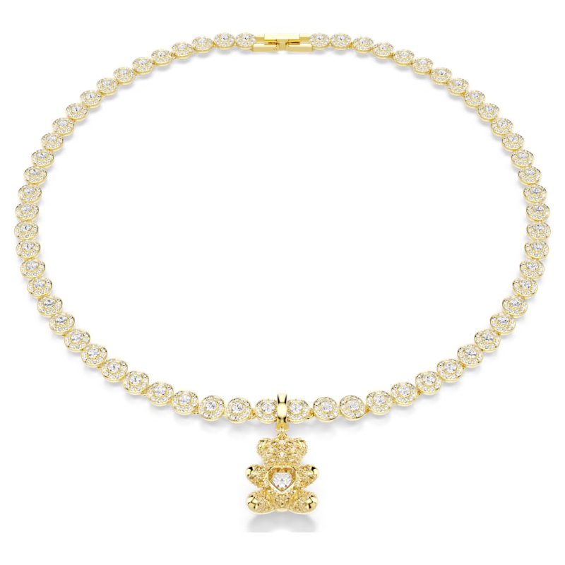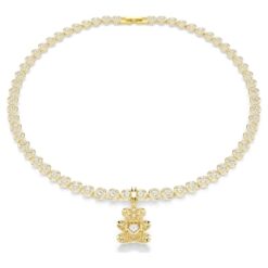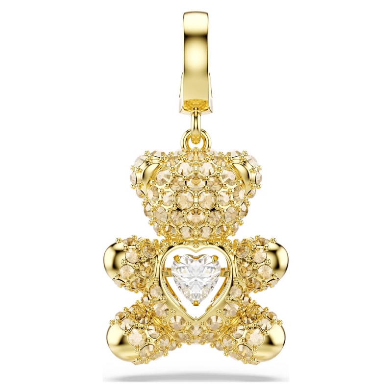 Este charm de osito bañado en tono oro añade un toque personal a tu estilo diario y es una elección ideal para aquellos con un espíritu divertido. Esta creación está adornada con cristales y con una radiante Dancing Stone en el centro, y presenta un cierre de diseño personalizado que te permitirá lucir el charm en varios collares y pulseras.