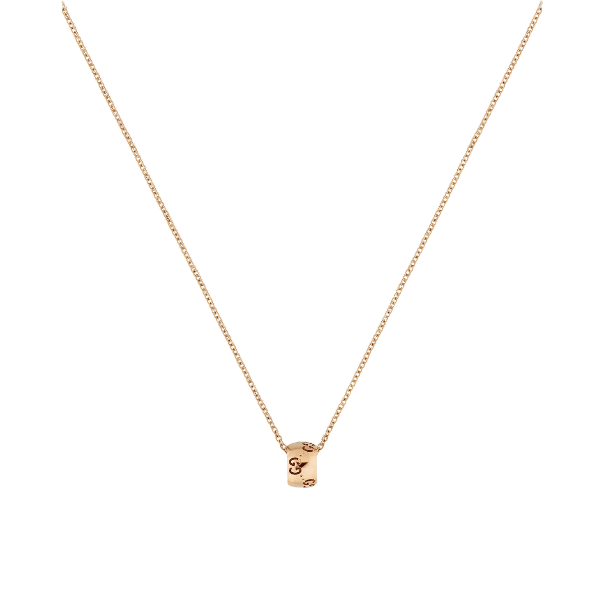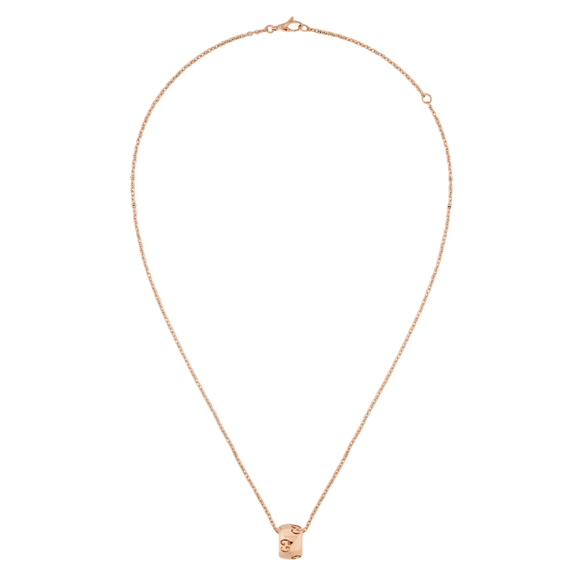 Para la colección de Otoño Invierno 2024, el surtido de joyería Icon presenta un nuevo motivo GG perforado en las siluetas redondeadas. El característico motivo de la Firma decora un colgante de este collar en oro rosa de 18 quilates. Los collares son ajustables para llevarlos cómodamente.