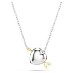 Añade un toque de pasión divertida en tu estilo con este brillante colgante en forma de corazón. Suspendido de una delicada cadena, el motivo bañado en rodio está decorado con Swarovski Zirconia transparentes y atravesado por la flecha de Cupido bañada en tono oro. Combínalo con los pendientes de botón a juego para infundir romanticismo.