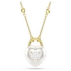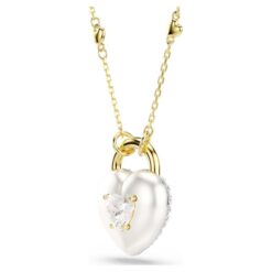 Este romántico colgante, que simboliza los secretos del amor, presenta un motivo de corazón inspirado en un medallón, que se puede girar fácilmente para lucir de dos maneras diferentes. Por un lado, una superficie bañada en rodio con un único cristal en forma de corazón, y por el otro, un radiante engaste de Swarovski Zirconia al estilo chatonnage. El motivo cuelga de una delicada cadena bañada en tono oro, que a su vez está adornada con pequeñas cuentas en forma de corazón.