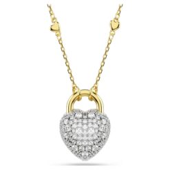 Este romántico colgante, que simboliza los secretos del amor, presenta un motivo de corazón inspirado en un medallón, que se puede girar fácilmente para lucir de dos maneras diferentes. Por un lado, una superficie bañada en rodio con un único cristal en forma de corazón, y por el otro, un radiante engaste de Swarovski Zirconia al estilo chatonnage. El motivo cuelga de una delicada cadena bañada en tono oro, que a su vez está adornada con pequeñas cuentas en forma de corazón.