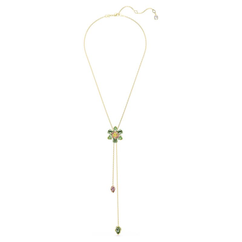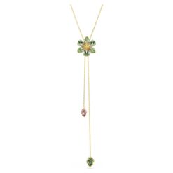 Elige la magia y la maravilla con este radiante colgante en forma de V del jardín Idyllia. El motivo central, suspendido de una delicada cadena, tiene forma de flor e incorpora brillantes pétalos verdes elaborados en diferentes formas y tonalidades. Dos cristales adicionales, uno rosa y otro verde, cuelgan debajo. Una forma alegre de complementar tu estilo o un divertido regalo para alguien a quien quieras.