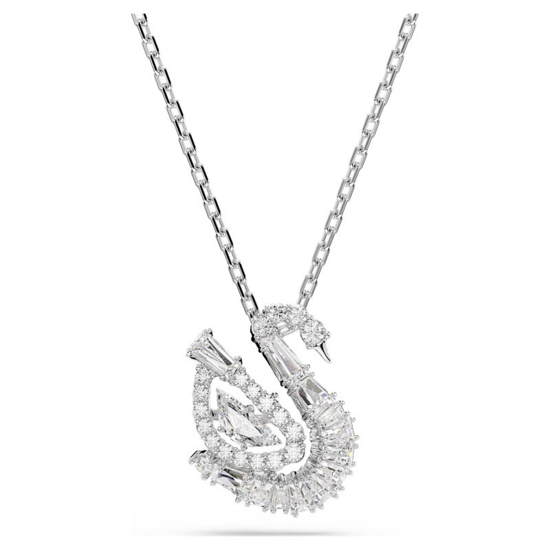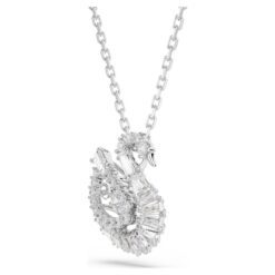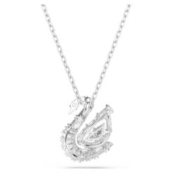 Este colgante transmite el grácil movimiento del emblemático cisne de Swarovski. Suspendido de una cadena bañada en rodio, el motivo central revela una elegante silueta, adornada con Swarovski Zirconia y con una Dancing Stone transparente tallada en forma de cuerpo de cisne. Este radiante detalle crea un movimiento infinito de luz y color, y hará que tu estilo siga brillando en todo momento.