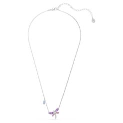 Este evocador colgante de libélula, símbolo de transformación, pende de una delicada cadena y presenta un motivo central bañado en rodio y adornado con Swarovski Zirconia transparentes en pavé. La cabeza incorpora una única Swarovski Crystal Pearl, mientras que las alas en colores pastel revelan tonos rosas y morados, lo que combina a la perfección con otras piezas con la libélula de la misma familia de accesorios.