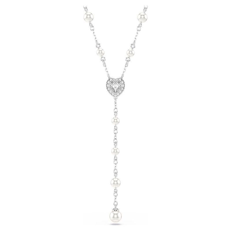Elaborado con delicadeza y belleza atemporal, este collar en forma de T representa a la perfección la alegre extravagancia de Swarovski. El diseño con baño de rodio presenta una delicada cadena adornada con Swarovski Crystal Pearls. En el centro incorpora un motivo en forma de corazón rodeado de brillante pavé, mientras que el strand colgante proporciona un toque final de sofisticación. Combina este collar con otros accesorios a juego para crear tus propias combinaciones radiantes.