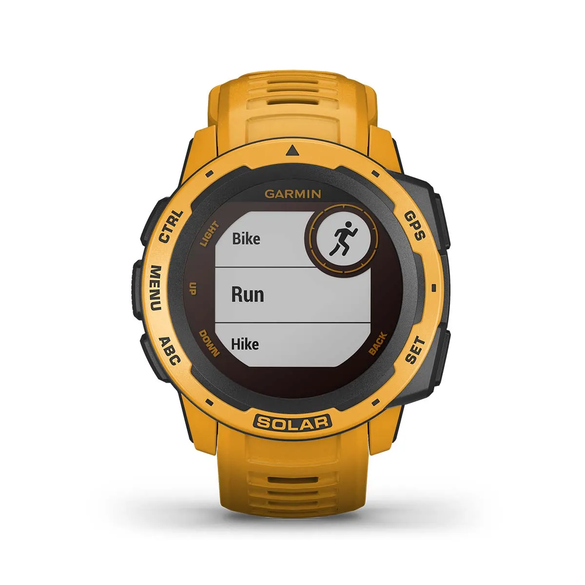 Instinct es un reloj inteligente Garmin con GPS diseñado para romper las reglas, conquistar los elementos y durar más tiempo. Lleva la autonomía de la batería a un nuevo nivel al aprovechar la energía solar. El diseño resistente conforme a estándares militares te permite cruzar todos los límites sin preocupaciones. La caja de polímero reforzado con fibra, el cristal Corning® Gorilla® resistente a los arañazos y reforzado químicamente. Los colores atrevidos, las pantallas de alto contraste y el diseño a medida dan vida a un reloj inteligente para nada tradicional y que llamará la atención allá donde vaya. Utiliza los perfiles de actividad preinstalados para surf, natación, carrera, ciclismo, senderismo, remo, actividades de fuerza y mucho más. Obtén datos de la frecuencia cardiaca y alertas mientras estás en reposo. Mide la intensidad del esfuerzo del corazón durante las actividades, incluso bajo el agua.