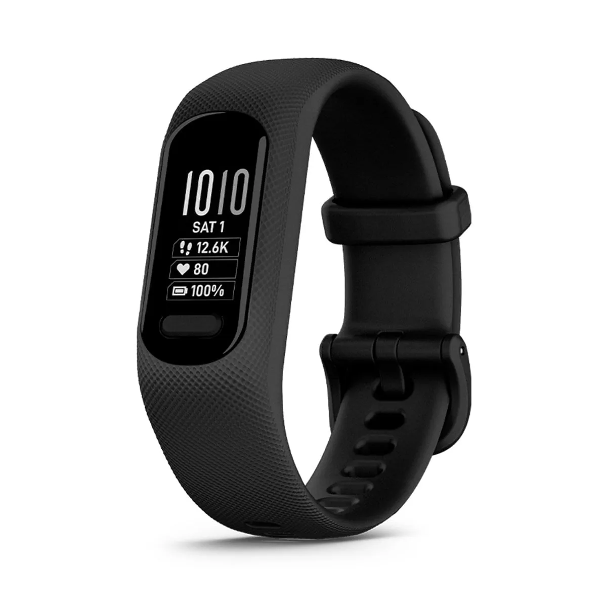 Si buscas un dispositivo cómodo que te acompañe en todo momento, el Smartwatch Garmin Vívosmart® 5 es la pulsera de actividad idónea y fácil de usar con la que podrás controlar tu salud y mantenerte activo todo el día. Registra los pasos, la frecuencia cardiaca y los niveles de energía. Este reloj inteligente Garmin tiene un diseño sencillo. Cuenta con pantalla brillante y hasta 7 días de autonomía de la batería. Camina, corre, haz yoga, monta en bici, entrena a tu manera con las aplicaciones deportivas preinstaladas. Al despertar, consulta la puntuación para saber la calidad del sueño. Mantente conectado. Consulta los mensajes de texto, las llamadas y las notificaciones de tu smartphone vinculado. Conéctate al GPS de tu smartphone y registra fácilmente los paseos, las carreras y las rutas en bici al aire libre.