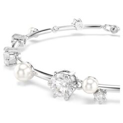 Brilla como las estrellas con esta deslumbrante pulsera Constella. Este diseño, inspirado en la maravilla del cielo nocturno, presenta una agrupación de Swarovski Zirconia y Swarovski Crystal Pearls de diferentes tamaños que parecen flotar entre las barras metálicas de la pieza. Su sencillo cierre de mosquetón se ajusta cómodamente a la muñeca. Combínala con otras piezas de la colección Constella para crear tu propia aura cósmica.