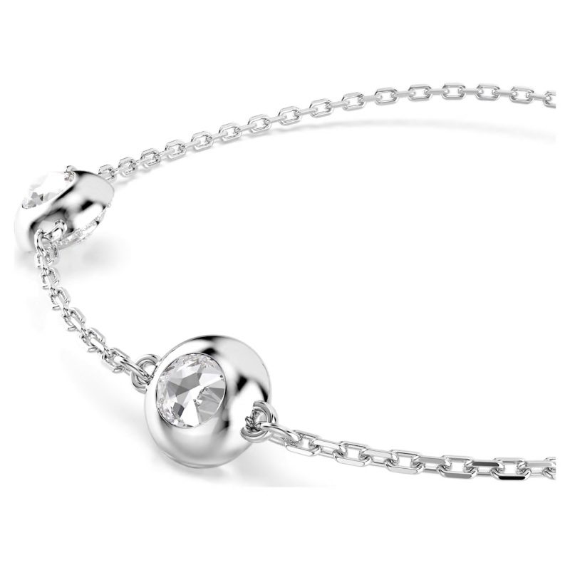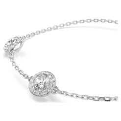 Esta innovadora pulsera de Swarovski está hecha para una divertida versatilidad. La cadena bañada en rodio presenta un mecanismo deslizante para un ajuste fácilmente adaptable y está adornada con tres motivos de doble cara. Simplemente dale la vuelta a la pulsera para mostrar una presentación diferente de cristales en talla redonda. Combínala con otras piezas Una Angelic para un look de máximo resplandor.
