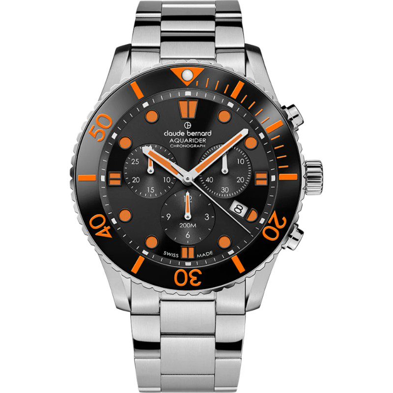 Con una resistencia al agua de 200 metros / 20 ATM, el cronógrafo Claude Bernard Aquarider es perfecto para todas tus actividades de buceo. Las agujas e índices luminiscentes garantizan una excelente legibilidad en condiciones de poca luz, mientras que el bisel giratorio para buceo añade funcionalidad a tus aventuras submarinas.