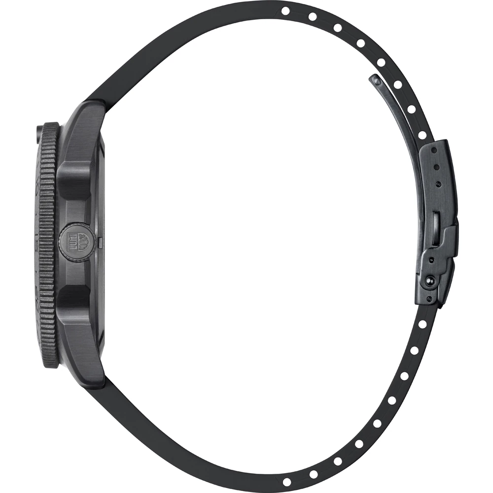 Luminox Pacific Diver Black Series combina estética moderna con alto rendimiento para buceo y uso diario. Su caja de 44 mm en acero inoxidable con bisel unidireccional en CARBONOX™ ofrece resistencia, durabilidad y ligereza en equilibrio perfecto.