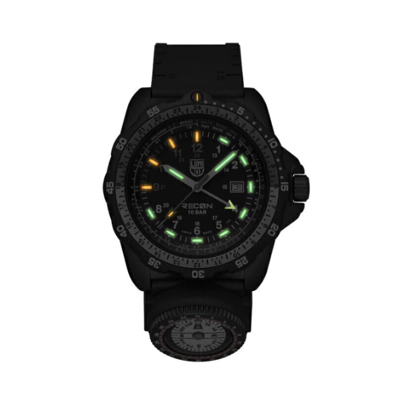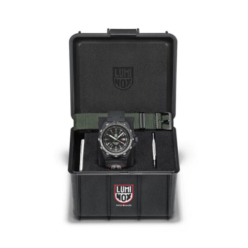 Luminox Recon Point Man 8837 SET es un reloj táctico de navegación diseñado para operaciones en terreno y orientación avanzada. Su caja de 46 mm en CARBONOX™, ultraligera y resistente, incorpora cristal de zafiro antirreflejo y tecnología Luminox Light Technology (LLT) para visibilidad permanente hasta 25 años.