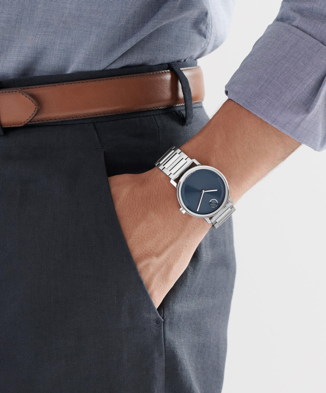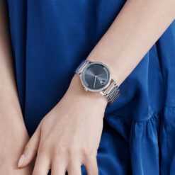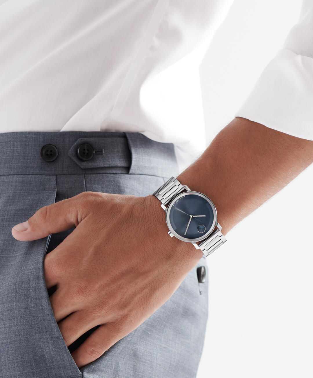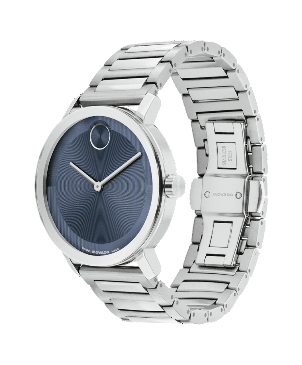 La evolución del diseño moderno con un aspecto nítido y una sensación elevada. Hecho a mano de acero inoxidable, este elegante reloj cuenta con una llamativa caja de 40 mm que alberga una cautivadora esfera azul oscuro con microtexturizado con manecillas delgadas y nuestro icónico motivo de puntos a las 12 en punto.