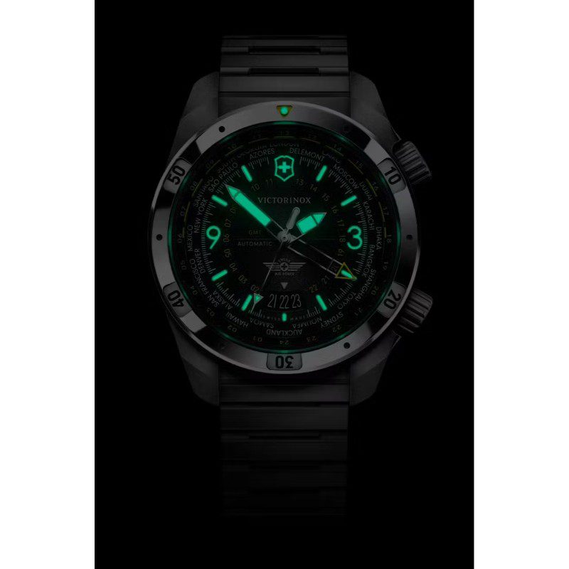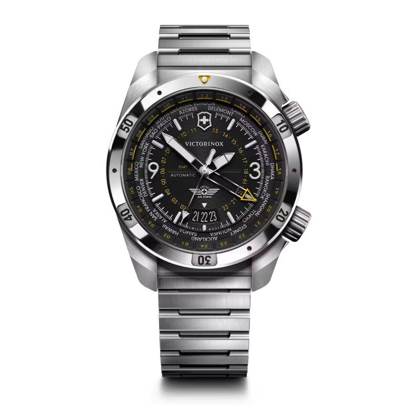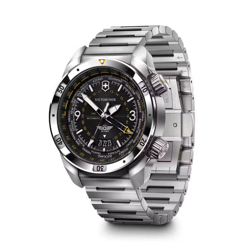 Navega tu día con la confianza que te da la precisión suiza en relojería, diseño innovador y funciones listas para el vuelo. El reloj Air Pro Automatic combina estilo clásico e ingeniería avanzada para asegurar la máxima funcionalidad. Las dobles coronas te permiten manejar 3 zonas horarias con precisión, y gracias a los índices luminiscentes en relieve podrás leer la hora de día o de noche. Afronta cualquier actividad gracias a la certificación ISO en resistencia al agua y a los golpes.