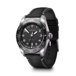 El Swiss Army Automatic simboliza la tecnicidad en su más alto nivel. Funcional, pero con diseño, se adapta a varias tareas a la perfección. La esfera optimizada con numerales con relieve y manecillas grandes SuperLuminova® iluminadas aseguran fácil legibilidad las 24 horas. El movimiento automático de fecha Sellita SW200 fija el estándar de precisión. Su confianza inquebrantable simplifica tus desafíos diarios.