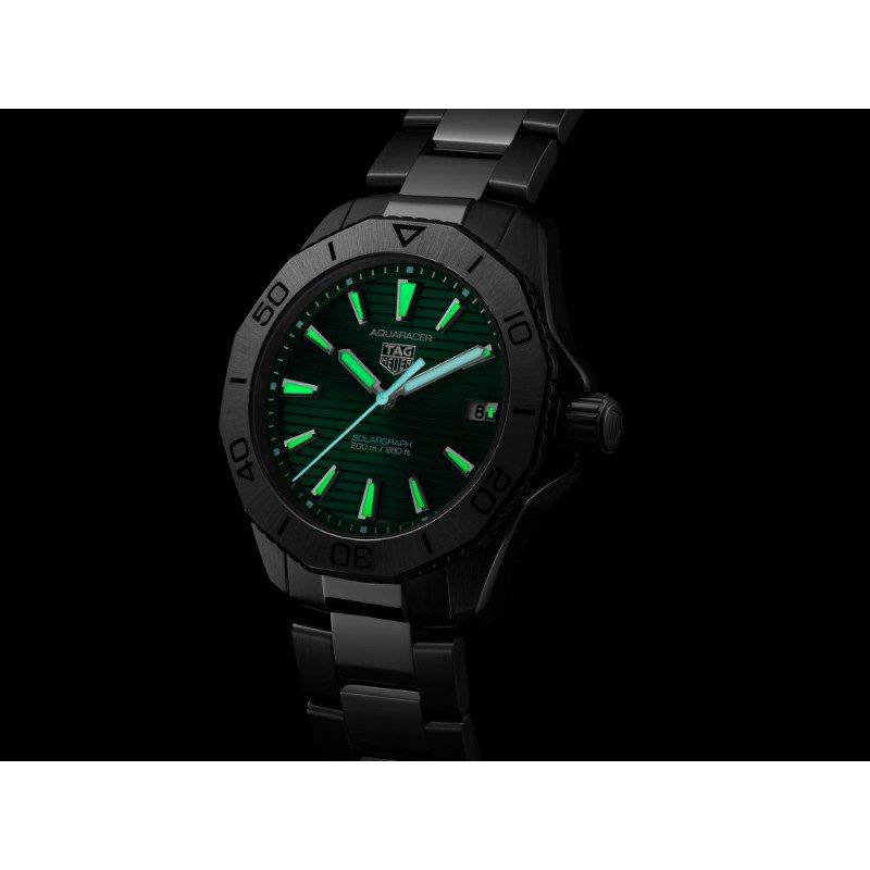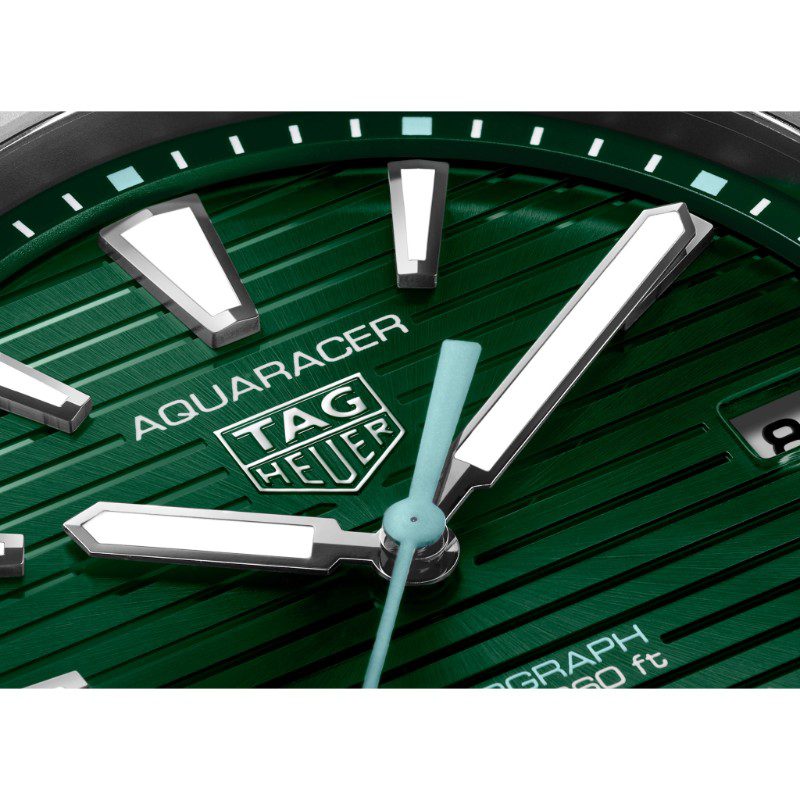 La esfera verde con efecto “rayos de sol”, un homenaje a la naturaleza, se complementa con agujas e índices chapados en rodio con Super-LumiNova® blanca para garantizar una legibilidad óptima.
