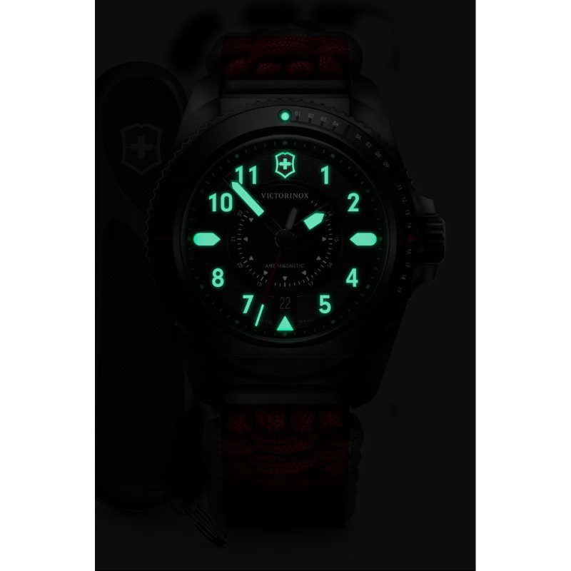 Diseñado en homenaje al mundo natural y al ADN de ingeniería de Victorinox, la edición limitada de cuarzo del Journey 1884 ofrece un elegante bisel giratorio unidireccional negro de PVD con incrustación de aluminio mate. Es un destacado reloj exclusivo con resistencia al agua y a los golpes y protección antimagnética que bloquea la electrocontaminación, para que puedas confiar en su precisión en cualquier entorno. Cada reloj con numeración individual viene con una Navaja Suiza, una correa de caucho y una cartera de accesorios adicionales; todo presentado en un empaque especial para hacer el regalo perfecto o para coleccionar. Viaja con osadía, a la manera suiza.